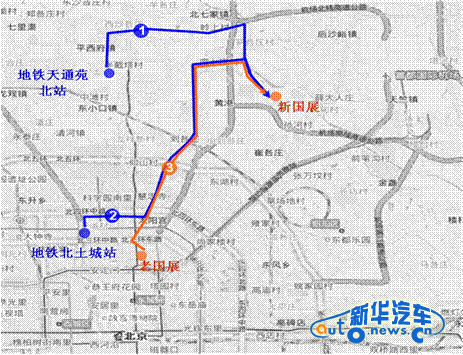 2010北京車(chē)展1、2、3號(hào)線(xiàn)專(zhuān)線(xiàn)行駛路線(xiàn)圖