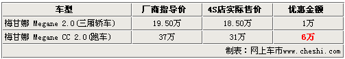 與雪鐵龍、標(biāo)致同為法系知名汽車(chē)制造商的雷諾,以進(jìn)口方式引進(jìn)國(guó)內(nèi)的車(chē)型有風(fēng)景、梅甘娜以及拉古娜等多款車(chē)型。其中梅甘娜車(chē)型分為三廂版本和跑車(chē)兩個(gè)版本。近日根據(jù)網(wǎng)上車(chē)市價(jià)格檢測(cè)系統(tǒng)顯示,梅甘娜全系車(chē)型均出現(xiàn)了價(jià)格松動(dòng),三廂普通版車(chē)型可優(yōu)惠1萬(wàn)元,而跑車(chē)版梅甘娜的優(yōu)惠幅度達(dá)到6萬(wàn)具體車(chē)型售價(jià)見(jiàn)下表: