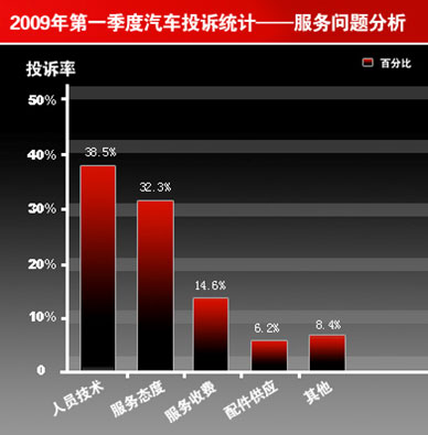 中新網(wǎng)4月24日電 日前,中國(guó)質(zhì)量協(xié)會(huì)用戶委員會(huì)、車人網(wǎng)聯(lián)合發(fā)布了2009年一季度中國(guó)汽車產(chǎn)品質(zhì)量與服務(wù)質(zhì)量分析報(bào)告。統(tǒng)計(jì)顯示,在關(guān)于汽車產(chǎn)品服務(wù)質(zhì)量的投訴中,久修不好仍是引發(fā)消費(fèi)者投訴廠家服務(wù)質(zhì)量的最主要原因。