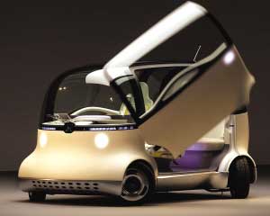 “PIXY”是僅供1人乘坐的低速移動(dòng)工具。其主要特點(diǎn)是:相當(dāng)于人行走的移動(dòng)速度,絲毫不會(huì)帶給人壓迫感的卵形車(chē)身、柔軟的外裝材料。由于裝載了可快速充電的電容器的發(fā)動(dòng)機(jī)驅(qū)動(dòng),因此不會(huì)有廢氣產(chǎn)生!癝SC”是可以前后放入兩個(gè)“PIXY”的輕型汽車(chē)合體,動(dòng)力采用的是燃料電池系統(tǒng)。