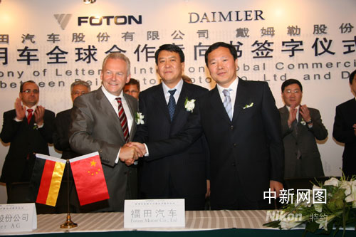 左起:戴姆勒董事顧儒伯、北汽控股董事長(zhǎng)徐和誼、福田總經(jīng)理王金玉
