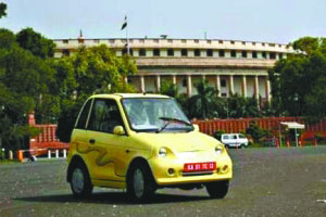 “雷瓦”電動車由電池驅(qū)動,可在家里或辦公室充電。無排放,有益環(huán)保。它由重量較輕的鋼材和塑料制造,車身零件也比普通汽車少。(王穎)