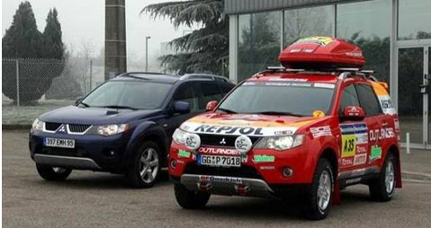 MITSUBISHI OUTLANDEREX支援車是在原有歐洲款OUTLANDER 2.2升(柴油版)市場(chǎng)銷售車型基礎(chǔ)上改進(jìn)而成的。較原型車相比,外形變化不大,為進(jìn)一步加強(qiáng)越野性能而改裝車底和前后護(hù)板、拖拽鉤以及車頂?shù)男欣钫值龋⑴鋫渖?個(gè)賽車桶椅、賽車用五點(diǎn)式安全帶、防滾架,以及副油箱、GPS導(dǎo)航系統(tǒng)等這些在沙漠中遠(yuǎn)行必不可少的裝備。發(fā)動(dòng)機(jī)、變速箱和底盤等基本維持市場(chǎng)銷售車的規(guī)格。