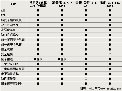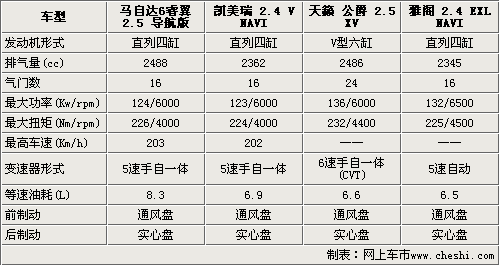 通過上述描述,相信您對這四款車型有了一個大致的了解。馬自達(dá)6睿翼外觀設(shè)計(jì)較為時(shí)尚,安全性能突出,具有較高的性價(jià)比。新雅閣擁有大氣的外觀,全面的配置絕對能夠滿足大多數(shù)公務(wù)用途。凱美瑞在市場上有著絕對的號召力和保有量,消費(fèi)者對它的反應(yīng)更是有口皆碑的,是一款不折不扣的全能車型。而天籟•公爵則擁有出色的動力性能。四款車可以說是各有各的特點(diǎn)和優(yōu)勢,至于最終的選擇還要看消費(fèi)者的實(shí)際需求了。 (李曉磊)