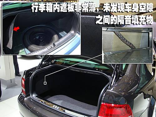 斯柯達昊銳應(yīng)該說是這三款車型中最為厚道的一款,在其行李箱內(nèi)部的包裹材料與外側(cè)車身之間的空隙中,記者看到了非常厚實的一層隔音棉作為填充。