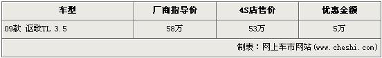 據(jù)4S店銷售人員介紹,在售的只有09款謳歌TL 3.5一種車型,廠商指導(dǎo)價(jià)為58萬元,F(xiàn)在購(gòu)買09款謳歌TL3.5的消費(fèi)者可以享受到5萬元的現(xiàn)金優(yōu)惠,經(jīng)優(yōu)惠后售價(jià)從58萬元下降到了53萬元。4S店內(nèi)現(xiàn)車比較齊全,消費(fèi)者有一定的挑選空間。