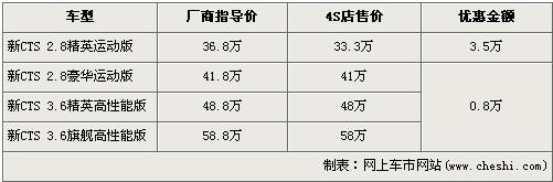 在美國素有“駕駛者之車”美譽的凱迪拉克CTS豪華運動轎車,是一款將動力性、操控性、舒適性完美結合的經典產品,其的售價區(qū)間為36.8萬元-58.8萬元。近日據網上車市價格數據監(jiān)測顯示,凱迪拉克新CTS最高優(yōu)惠仍為3萬元,具體詳情看下表: