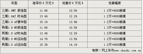 經(jīng)銷商表示,購買福克斯全系車型除了可以得到1.3萬元的現(xiàn)金優(yōu)惠外,還可以得到價(jià)值4500元汽車裝飾。優(yōu)惠后的?怂箖蓭1.8MT 舒適型售價(jià)僅為10.59萬。銷售人員還表示,目前?怂勾蟛糠周囆偷挠鞋F(xiàn)車,顏色方面可選余地不大。