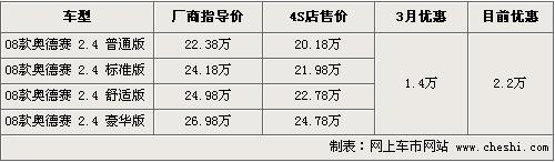 筆者從廣州本田北京地區(qū)經(jīng)銷(xiāo)商處了解到,目前銷(xiāo)售的08款?yuàn)W德賽降幅又出現(xiàn)了新的優(yōu)惠幅度。3月份左右,奧德賽全系優(yōu)惠到了1.4萬(wàn)元,而目前增加到了2.2萬(wàn)元,直接增加8000元,最低價(jià)格僅售20.18萬(wàn)元,F(xiàn)售的四款?yuàn)W德賽車(chē)型中,普通版座椅為絨布材質(zhì),其他三款均為真皮材質(zhì),現(xiàn)車(chē)多以黑色和銀色為主。另?yè)?jù)銷(xiāo)售人員介紹,新款的奧德賽有望在6月份上市銷(xiāo)售,但目前具體細(xì)節(jié)尚未公布。