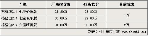 筆者從進(jìn)口三菱北京地區(qū)經(jīng)銷(xiāo)商處了解到,目前4S店格藍(lán)迪只有為數(shù)不多的現(xiàn)車(chē)供應(yīng),受匯率影響,格藍(lán)迪對(duì)外的報(bào)價(jià)不太穩(wěn)定。全系七座版車(chē)型可優(yōu)惠1萬(wàn)元左右,六座精英版最高可優(yōu)惠到2萬(wàn)元。但這兩款車(chē)均需要預(yù)訂,據(jù)銷(xiāo)售人員介紹,近期將陸續(xù)有一批新車(chē)到店,數(shù)量和顏色較多。