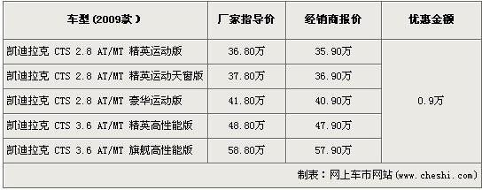 對比起08款款的4.5萬元的優(yōu)惠,09款凱迪拉克的現(xiàn)金讓利是極為“吝嗇”,上個月網(wǎng)上市價格監(jiān)測系統(tǒng)顯示新款凱迪拉克是分文不讓,近日,筆者走訪廣州地區(qū)經(jīng)銷商處了解到,09款凱迪拉克有9千元的降價,優(yōu)惠逼迫近萬大關(guān)。全系現(xiàn)車充足,主打紅色車和黑色車系。具體價格如下: