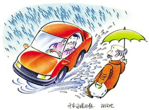 無(wú)車(chē)德行為五:雨天濺人一身泥水