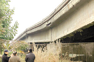 記者在現(xiàn)場(chǎng)看到,此次橋墩下沉比去年6月份麻涌段23號(hào)橋墩下陷嚴(yán)重得多,塌陷處整個(gè)凹陷。據(jù)廣深珠高速公路有限公司副總經(jīng)理藍(lán)恒水介紹,下沉的32號(hào)橋墩出事前就在進(jìn)行大修,此次由于路基漂移導(dǎo)致了下沉,修復(fù)方案仍在研究之中。