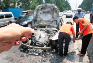 據(jù)現(xiàn)場(chǎng)有經(jīng)驗(yàn)的司機(jī)推測(cè),自燃原因估計(jì)是汽車(chē)在高溫情況下,電線短路或油箱漏油引發(fā)的,不過(guò)這一說(shuō)法尚未得到證實(shí)。據(jù)悉,交警對(duì)此事已經(jīng)介入調(diào)查。(張配吉 陸璟)