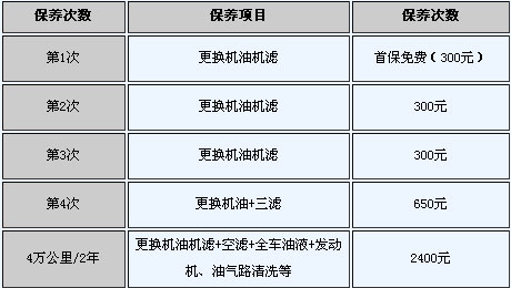 6.保養(yǎng)費。假設(shè)一年跑2萬公里,廠家規(guī)定每5000公里保養(yǎng)一次,一年則需要做保養(yǎng)4次。由維修點處可知,每隔兩萬公里三濾全換費用為650元,三次常規(guī)保養(yǎng)(只更換機油機濾)300元,,此外每4萬公里或兩年要做一次全車徹底大保養(yǎng)(更換機油機濾+空濾+全車油液+發(fā)動機、油氣路清洗等)為2400元,那么平均一年保養(yǎng)費用花費大概2425元左右。