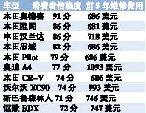 作為一種耐用消費(fèi)品,車輛的耐用性(使用成本)已經(jīng)成為購車的主要衡量指標(biāo)。近日,美國財(cái)經(jīng)雜志《福布斯》評出了10大經(jīng)久耐用車型(Ten Toughest Cars)。評比標(biāo)準(zhǔn)涉及消費(fèi)者信賴度,新車故障率,前5年維修費(fèi)用及安全性能等綜合表現(xiàn),結(jié)果日系車大獲全勝。除了奧迪A4、沃爾沃XC90外,排名最耐用性前10名中有8款是日本車系,美國本土車型則全軍覆沒。其中本田一家就占了6款,奧德賽和雅閣分別位于排行榜的前兩位,這或許可以解釋日系車在全球范圍內(nèi)的成功。(王燦彬)