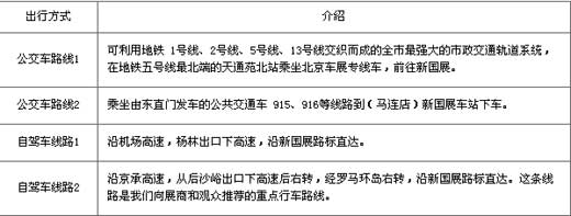 2.沿京承高速,從后沙峪出口下高速后右轉(zhuǎn),經(jīng)羅馬環(huán)島右轉(zhuǎn),沿新國(guó)展路標(biāo)直達(dá)。這條線路是我們向展商和觀眾推薦的重點(diǎn)行車路線。