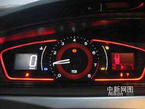 位于中央的轉(zhuǎn)速表去,首次采用脈沖感應(yīng)設(shè)計,使儀表盤更具運動感,并能快速靈活的表示發(fā)動機轉(zhuǎn)速。中央轉(zhuǎn)速盤上還包括用來表示車輛手剎狀態(tài)的手剎指示燈等車輛信息。當(dāng)手剎被拉起后,該指示燈自動點亮。手剎被放下時,該指示燈自動熄滅。