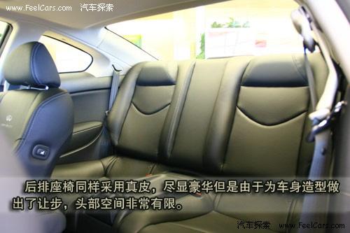 后排乘員可以通過靠背上角的拉手將椅背放到從而更輕松的進(jìn)入后排。在車內(nèi)時,則可以按下副駕駛椅背側(cè)面的按鈕后可以將座椅整體前移,方便下車。雖然后排座椅的真皮用料同樣盡顯豪華,但由于為造型做出了犧牲,頭部空間非常有限。