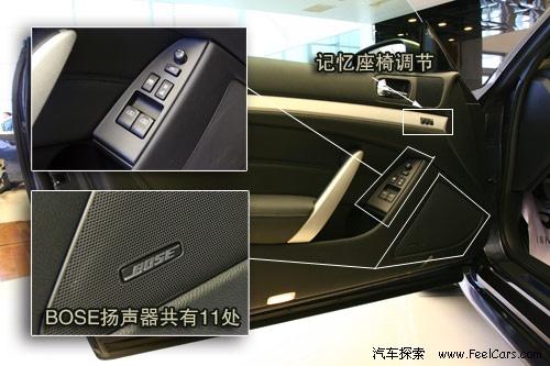 G37 Coupe的座椅顯示出英菲尼迪豪華品牌的定位,打孔通風(fēng)真皮座椅調(diào)節(jié)功能豐富。駕駛席座椅可以進(jìn)行14向電動調(diào)節(jié),副駕駛席為8向。BOSS音響在國內(nèi)早已是家喻戶曉,在英菲尼迪G37 Coupe上共有11個BOSS揚(yáng)聲器,可以播放6碟CD機(jī)或是由娛樂接的信號。