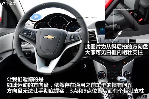 方向盤第一個不足還是老生常談:通用系列的方向盤在3點(diǎn)和9點(diǎn)位置后面都有粗壯的方向盤支柱,造成手無法完全握實(shí),這個問題我我們從林蔭大道測試開始呼吁、到君越6AT、再到新君威、再到這次的科魯茲,天知道什么時候通用才明白方向盤3點(diǎn)9點(diǎn)的后面是該人手握的,是不能侵占的空間。