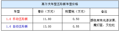 目前店內(nèi)有的五彩版高爾夫有深黑、魔幻藍(lán)、艾拉紅三種顏色的現(xiàn)車,而且手動自動車型均有車銷售。而現(xiàn)在高爾夫五彩版高爾夫的售價則是手動車型11.7萬、自動版13萬元。目前購車還能得到店方贈送的全額購置稅。據(jù)了解目前店內(nèi)對五彩版高爾夫車型還有大幅度的優(yōu)惠,車價直降1萬元,而加上店方贈送的購置稅使得高爾夫的性價比更高。