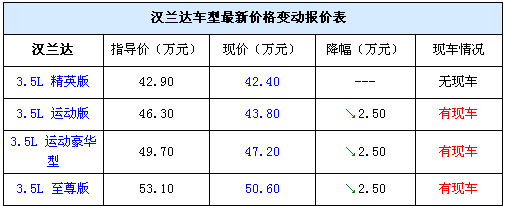 漢蘭達(dá):清理庫存低配現(xiàn)車少,優(yōu)惠減至2.5萬