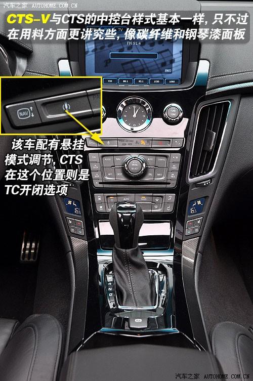 在CTS-V車內(nèi),我看到了不少運動型或性能車上所具有或沒有的特點,說起來有些繞口,首先談談共性。一般情況下,運動型車內(nèi)都會用深色為基調(diào)的內(nèi)飾并搭配碳纖維面板,有些車上還會用白色縫合線與深色高等皮質(zhì)搭配,這樣一來,不僅樣式好看,它所透出的動感也是無法掩蓋的。