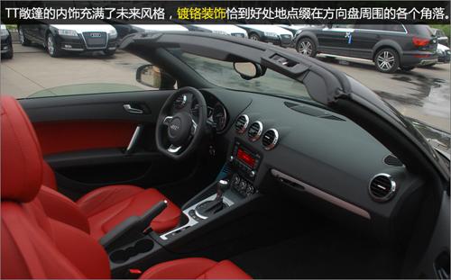 TT 敞篷采用的是軟頂,而并未隨大趨勢使用電折硬頂,軟篷的收折及儲存均比硬頂富彈性,優(yōu)點是無須占用車尾大量空間,篷身可選擇不同顏色,配搭出更多變化的視覺效果。而且,奧迪TT 敞篷采用的多層布制軟篷有優(yōu)秀的隔音效果,不必擔心高速行駛時會有巨大的風(fēng)噪。