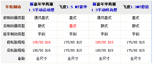 車(chē)輪制動(dòng) 新嘉年華兩廂1.5手動(dòng)運(yùn)動(dòng)型 飛度1.5 MT豪華 新嘉年華兩廂1.3手動(dòng)時(shí)尚型 飛度1.3MT舒適