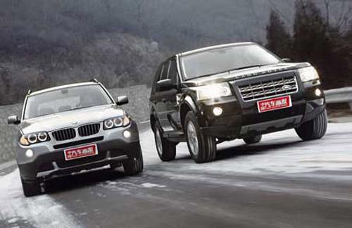 同出名門,且個(gè)性鮮明,在車身尺寸和價(jià)格上也都相近。因此,神行者2和X3自然而然成為直接競爭對(duì)手。有鑒于性能特點(diǎn),在進(jìn)入測(cè)試內(nèi)容前,我們先明確一下對(duì)它們的稱呼。顯然,“SUV”這個(gè)概念寬泛、模糊的名詞缺乏準(zhǔn)確性。那就按照廠家各自的定位來歸類它們的屬性吧,路虎神行者2——越野車、寶馬X3——SAV(Sport Activity Vehicle)。