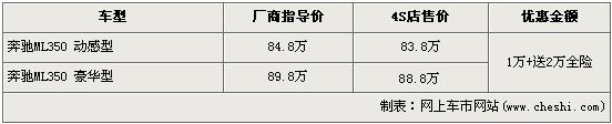 記者目前北京地區(qū)奔馳經(jīng)銷店了解到,現(xiàn)在購(gòu)買奔馳ML350動(dòng)感版和豪華型的消費(fèi)者都可享受現(xiàn)金1萬(wàn)元的優(yōu)惠,并且購(gòu)車的消費(fèi)者還可獲得4S店贈(zèng)送的全車的保險(xiǎn),價(jià)值2萬(wàn)元左右。銷售人員還介紹,目前4S店內(nèi)沒(méi)有奔馳ML現(xiàn)車供應(yīng),欲購(gòu)買車需等待一個(gè)月左右方可提車。