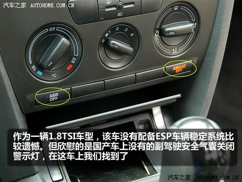 作為1.8TSI手動擋車型,我們在中控臺上并沒有發(fā)現(xiàn)ESP車輛電子穩(wěn)定系統(tǒng)的按鍵,不過我們找到了副駕駛安全氣囊關(guān)閉指示燈。經(jīng)真實,該車的確沒有配備ESP,比較遺憾。而國產(chǎn)明銳 1.8T 手動奪金版上則配有ESP,可見國產(chǎn)車的配置也還算厚道。