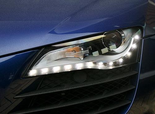 在圓潤(rùn)飽滿(mǎn)的車(chē)頭造型下,設(shè)計(jì)師將其切分為三個(gè)區(qū)塊;中央為盾形水箱護(hù)罩,兩側(cè)則整合頭燈與進(jìn)氣口設(shè)計(jì)。銳利有神的頭燈組采用HID氣體放電式頭燈,而12支LED構(gòu)成的日間行車(chē)燈也成為了而后奧迪家族的招牌特征;此外車(chē)主也能選用全LED頭燈,以54支LED提供接近日照的夜間照明效果。