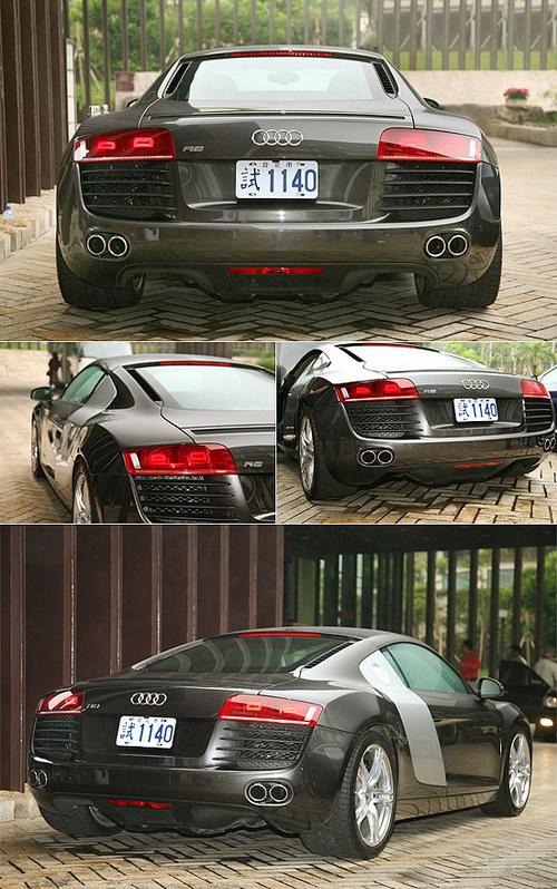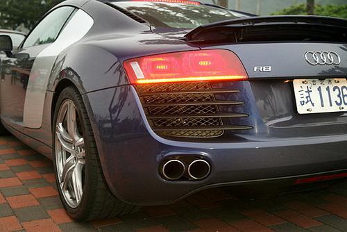 在車尾下部,R8采用左右對稱的四出排氣管設(shè)計,并很好的融合于車體之中。而車底也備有底盤擴散板的設(shè)計,搭配擾流尾翼,達(dá)到空氣力學(xué)優(yōu)化的要求。