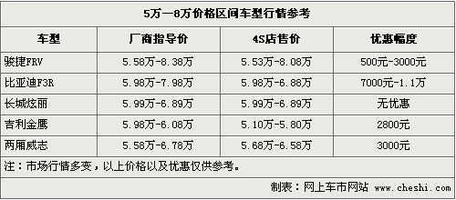 二、價(jià)位在5萬—8萬元之間的車型多少顯得有點(diǎn)尷尬,但是像剛上市沒多久的駿捷FRV、長城炫麗還是引來不少的關(guān)注度。這個(gè)區(qū)間車型在價(jià)格,配置,安全和舒適度方面表現(xiàn)都比較中庸。但是在駿捷FRV的身上我們能夠看到自主品牌的長足進(jìn)步。