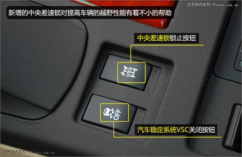 在排檔桿的后方,是中央差速鎖鎖止按鈕和汽車(chē)穩(wěn)定系統(tǒng)VSC關(guān)閉按鈕。汽車(chē)穩(wěn)定系統(tǒng)VSC相當(dāng)于德系車(chē)常見(jiàn)的ESP系統(tǒng),對(duì)于穩(wěn)定高速行駛的車(chē)輛有著很大的幫助。此外,新RX350還標(biāo)配了上坡輔助系統(tǒng)HAC、防抱死制動(dòng)系統(tǒng)ABS配制動(dòng)力輔助系統(tǒng)BA、電子制動(dòng)力分配系統(tǒng)EBD、牽引力控制系統(tǒng)TRC、汽車(chē)動(dòng)態(tài)中和管理系統(tǒng)VDIM,可以給駕駛員和乘客以最好的保護(hù)和輔助。