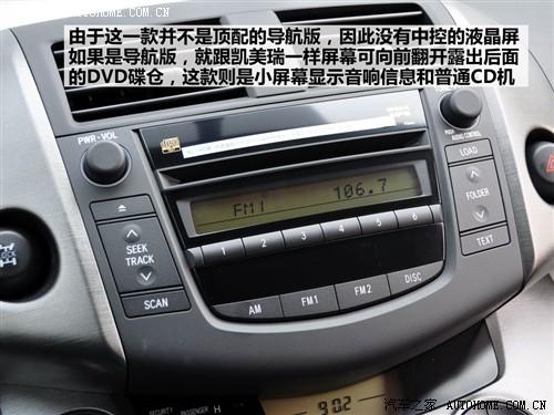 音響面板很簡單,沒有導(dǎo)航版的那么復(fù)雜,只是一個小屏幕來顯示音響信息,當(dāng)然也沒有DVD,只是配備了普通的CD。整個中控面板的材料在視覺上都比較有質(zhì)感和光澤。弧線造型和三個圓的按鍵組合設(shè)計得和諧而美觀。