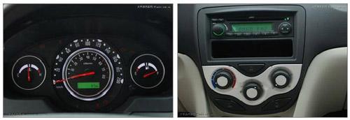 不得不提的亮點是,同悅復合式的自發(fā)光儀表盤無需特意去開啟,光線暗下來時就會自然變亮,外圈為時速表,內(nèi)圈為轉(zhuǎn)速表,左右兩側(cè)分別為水溫表和油表,非常漂亮,沒有像一些同級小型車那樣取消水溫表令人感到欣慰,這一點上確實體現(xiàn)了自主品牌的厚道。同悅儀表樣式效果都和凱美瑞很相像,充滿了立體感受。不過精細度程度仍然表明這只是經(jīng)濟自主小車。4個圓形空調(diào)出風口比悅翔更時尚,CD下的儲物格也充分利用起來。