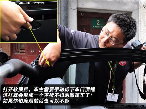 開(kāi)關(guān)頂棚很簡(jiǎn)單,在變速器前方的按鈕中選擇相應(yīng)的控制,頂棚就會(huì)自動(dòng)打開(kāi)。它不是一鍵式的,而是隨時(shí)聽(tīng)從你的說(shuō)停就停,頂篷可以隨意的設(shè)定進(jìn)程,你想只開(kāi)五分之一、一半或全開(kāi)都無(wú)所謂。