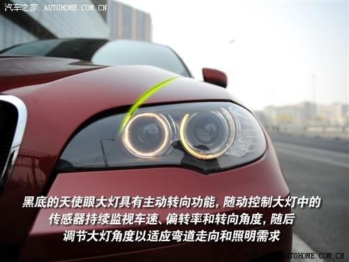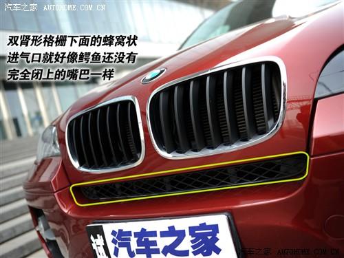 X6在細節(jié)的設計上也沒有偷懶,除了前臉的雙腎形格柵很難創(chuàng)新以外,其他很多細節(jié)還是很有特色的。格柵下面的蜂窩狀進氣口和X5的比較接近,就像鱷魚在咬到獵物之后,即將合上的大嘴一樣。大燈則是非常聰明的主動轉(zhuǎn)向頭燈,天使眼也絕對不會缺席,黑色的底色很配X6的設計風格。