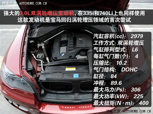 X6一種有兩款車,分別是xDrive35i和xDrive50i,此次我們體驗的是前者,它搭載的是和已經(jīng)引進的335i一樣的發(fā)動機:3.0排量雙渦輪增壓。這款發(fā)動機可以說是寶馬回歸渦輪增壓領域的首次嘗試,效果怎么樣?335i已經(jīng)被證明相當猛。