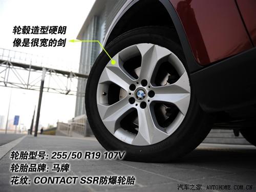 X6的輪轂是我十分喜歡的類型,不是很有“張力”但絕對看上去夠力量感,五個輻條就像五支古代西方武士所使用的比較寬的劍。前后一樣的輪胎寬度都是255mm,品牌還是寶馬比較青睞的馬牌,而且還是防爆胎,不過胎壁不像3系使用的那樣堅硬。花紋雖然不是十分細碎但也絕對不像專業(yè)SUV那樣粗大,更多還是照顧了公路性能。
