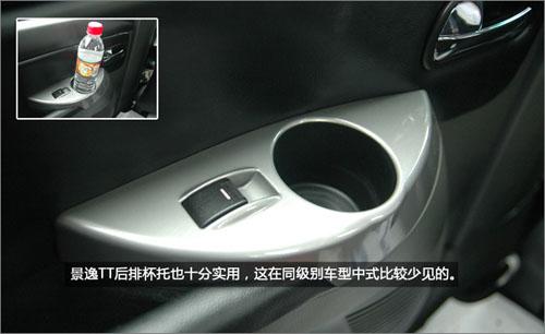 “景逸TT”全車共有38處個(gè)性儲(chǔ)物空間;此外,當(dāng)后排座椅被放倒時(shí),“景逸TT”的行李箱空間可從700升立刻增加至1970升,足可以滿足車主的任何需要。細(xì)節(jié)設(shè)計(jì)充分說明,景逸TT已經(jīng)將人性化設(shè)計(jì)發(fā)揮到不錯(cuò)的程度,每個(gè)細(xì)節(jié)都體現(xiàn)了設(shè)計(jì)師的用心與體貼。