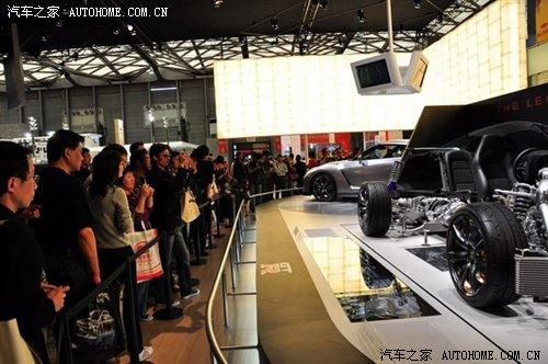 日產(chǎn)GT-R展車的旁邊停著一輛解剖的演示車,很多似懂非懂的觀眾都對(duì)著解剖車在給身邊的人認(rèn)真地講解著。我身后的一位兄弟指著GT-R的發(fā)動(dòng)機(jī)向他的女友說(shuō)著:看,雙離合變速器!@#¥%……&* 我心想:朋友,雙離合變速器真的在后面!看來(lái),高科技跑車除了跑得快,還有一個(gè)重要的作用——給人們提供聊天吹牛的素材。