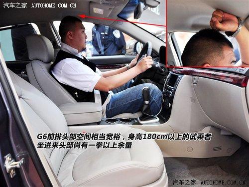 對(duì)于這種大尺寸車型最慣性的思路是感受它的空間。G6前排坐進(jìn)180cm以上乘客時(shí),頭部還有一拳以上余量。同一個(gè)人體驗(yàn)后排,腿部三指、頭部四指的空間余量只能說(shuō)比較一般。