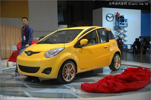 這款黃色的微型車被噴涂為全黃色的車身,靈巧的外形與可愛的外觀設計配合的相當完美。從車前看去,似乎是在對你微笑一般的前臉設計很討人,水滴型的前大燈更是給人一種流暢的感覺。