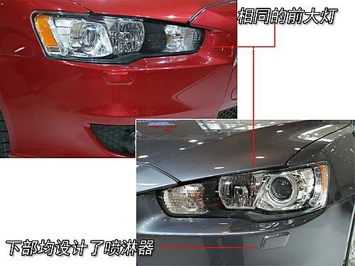 前臉其它部分的設計則基本相同,不僅是大燈的燈罩及燈組設計,連前杠兩側的大燈噴淋裝飾都一模一樣。