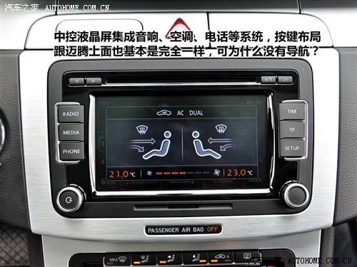 中控面板上有可以彈出的撥號鍵,右側(cè)則有一個儲物用的小抽屜,如果你見過進(jìn)口邁騰就會覺得這些都很眼熟。一個中央液晶屏基本囊括了整個音響、導(dǎo)航、電話和空調(diào)系統(tǒng)的功能,不過這款低配車型上沒有導(dǎo)航,按鍵布局跟國產(chǎn)邁騰一模一樣。