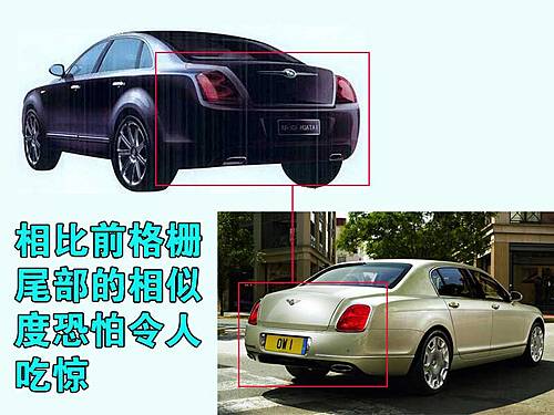 來到車尾,華泰C級車要比前臉更夸張,與賓利歐陸飛馳的尾部設(shè)計非常的相似,整體式的后尾燈,雙尾管鍍鉻設(shè)計都完全一樣。